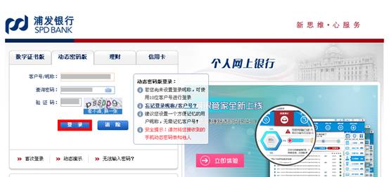1. 登錄浦發銀行官網(http://www.spdb.com.cn/),選擇個人網銀登錄