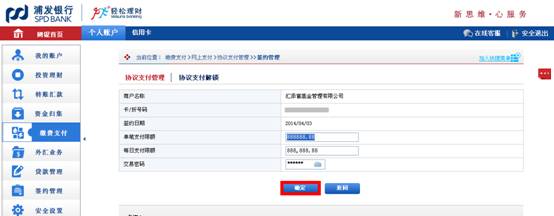 6. 輸入限額、交易密碼,點擊“確定”