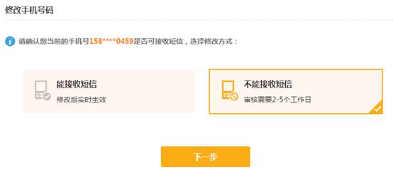 第二步:若是您的老手機號碼已經無法使用,麻煩選擇“不能接受短信”,點擊“下一步”。