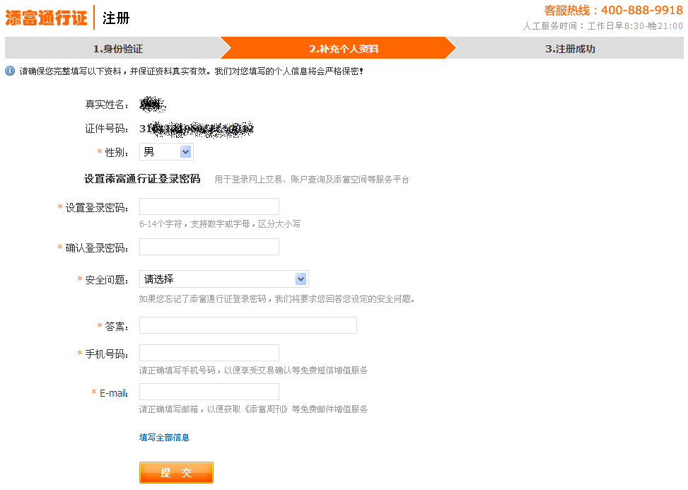首頁>客服中心>新手上路>開戶流程>注冊添富通行證>網上交易開戶第二步