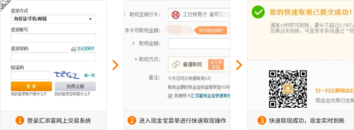 匯添富業內首推T+0快速取現,讓您從此告別貨幣基金贖回1-2天到賬。