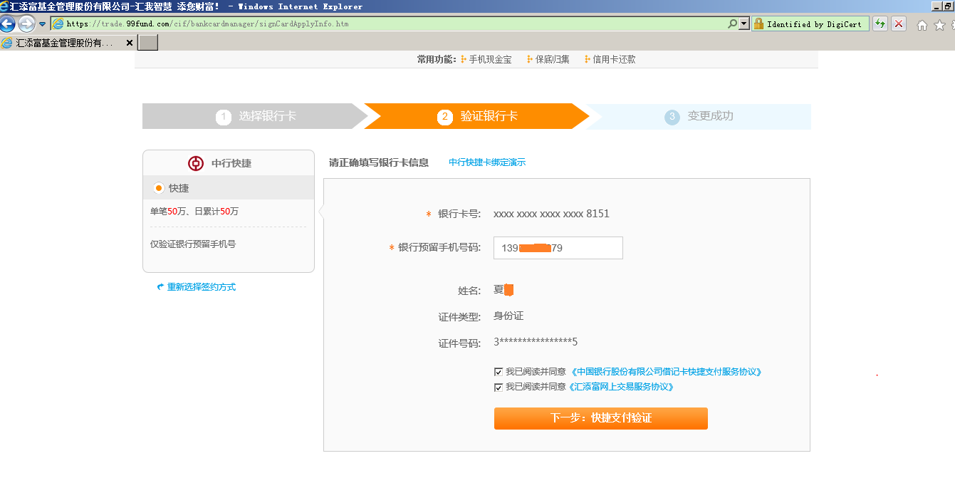 第三步 驗證銀行卡信息