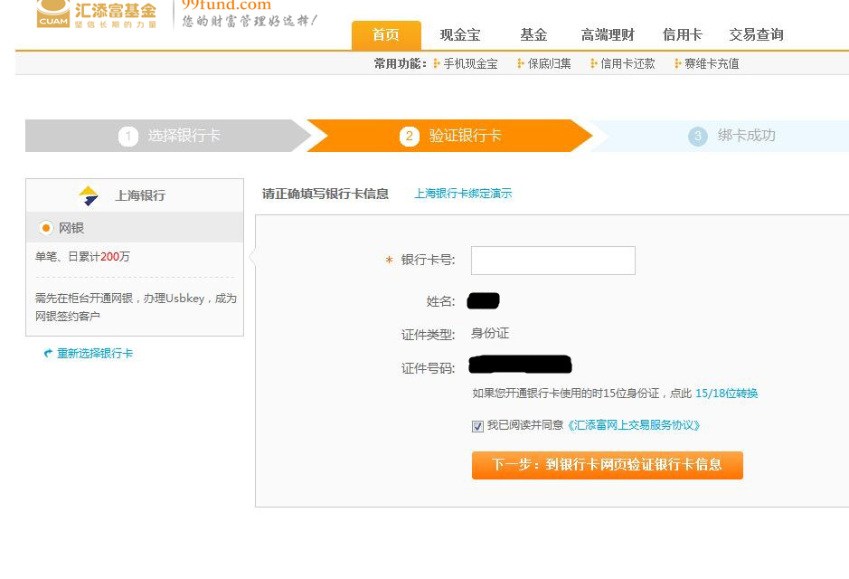 第三步 填入您的銀行卡信息,完成銀行卡驗(yàn)證