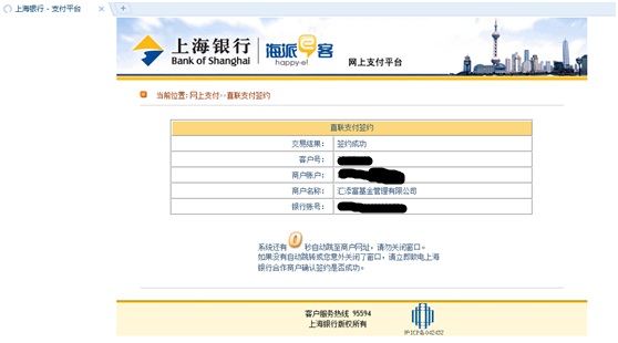 3.3 輸入E盾密碼,提示上海銀行直聯(lián)支付簽約成功,該頁面自動(dòng)關(guān)閉并跳轉(zhuǎn)至匯添富網(wǎng)上交易開戶頁面;