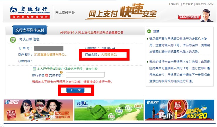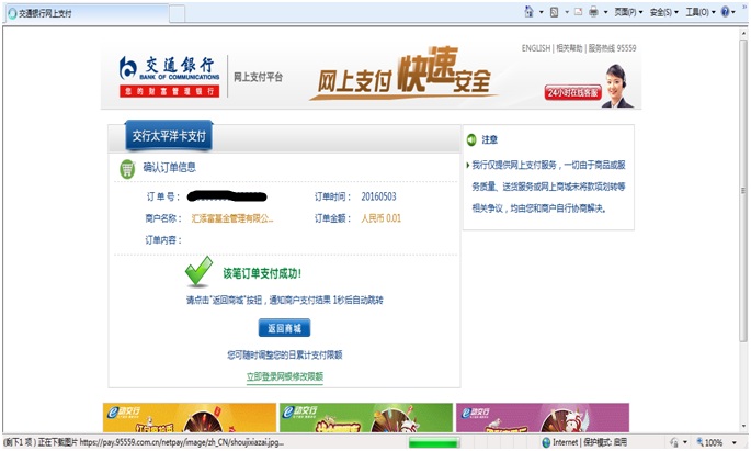 | 交通銀行網銀綁卡演示 |