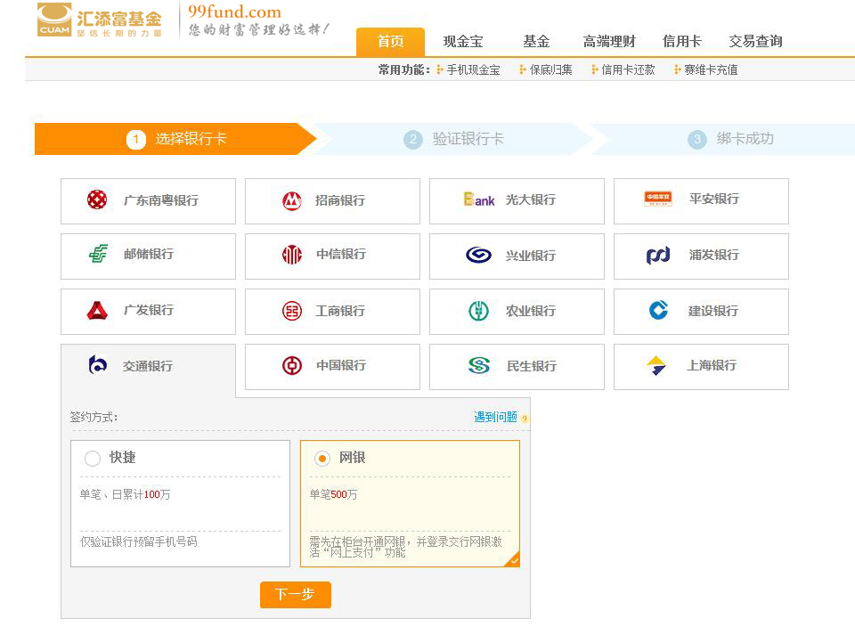 第二步 選擇交行銀行卡,點擊下一步