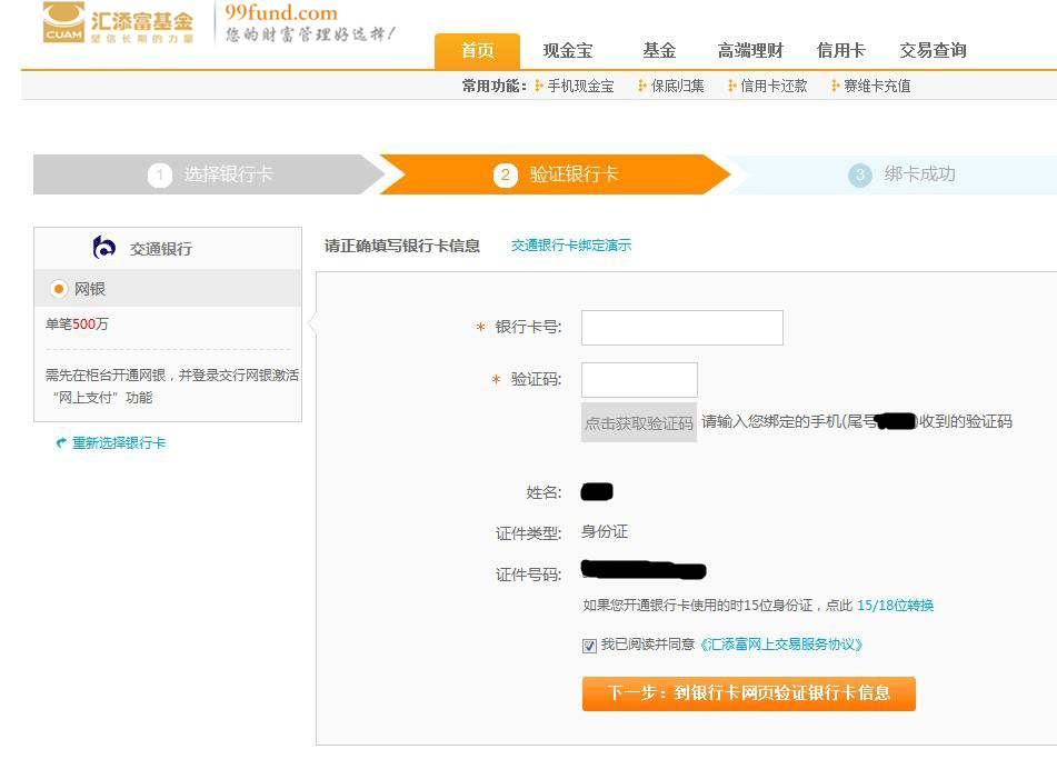 第三步 填入您的銀行卡信息,完成銀行卡驗證