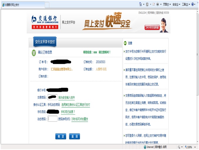 3.2 輸入交易密碼,動態驗證碼,扣1分錢驗證成功