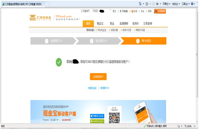 3.4 在“網頁正在試圖關閉”頁面中,選擇“是”,回到匯添富網站頁面,會提示綁卡成功。