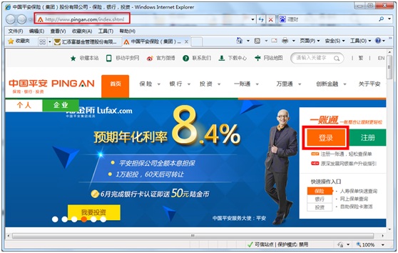1. 登錄平安銀行官網(wǎng)(http://www.pingan.com) 點擊“登錄”按鈕